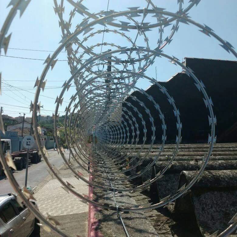 Cerca espiral de lâminas altamente cortantes. Pode ser instalada no formato espiral ou flat olímpico.